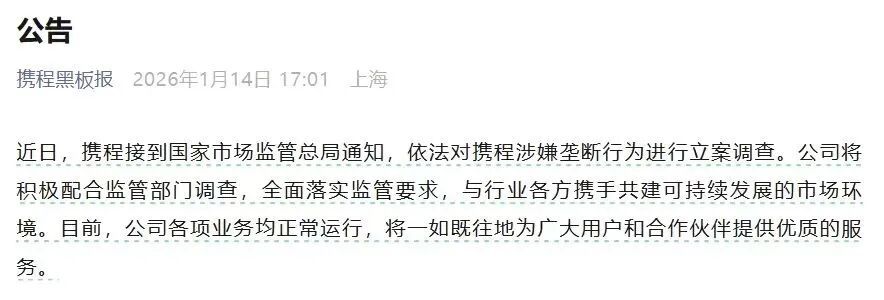 携程对被立案调查的回应